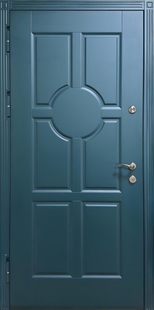 Металлобагетная входная дверь с карнизом и порошковым окрашиванием RAL 5009